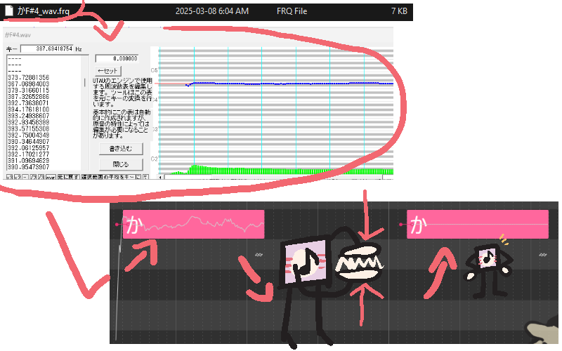 Frequency Files (.frq) serves as pitch information from a recording. This helps UTAU 'flatten' the pitch so the singer can sing on-tune!