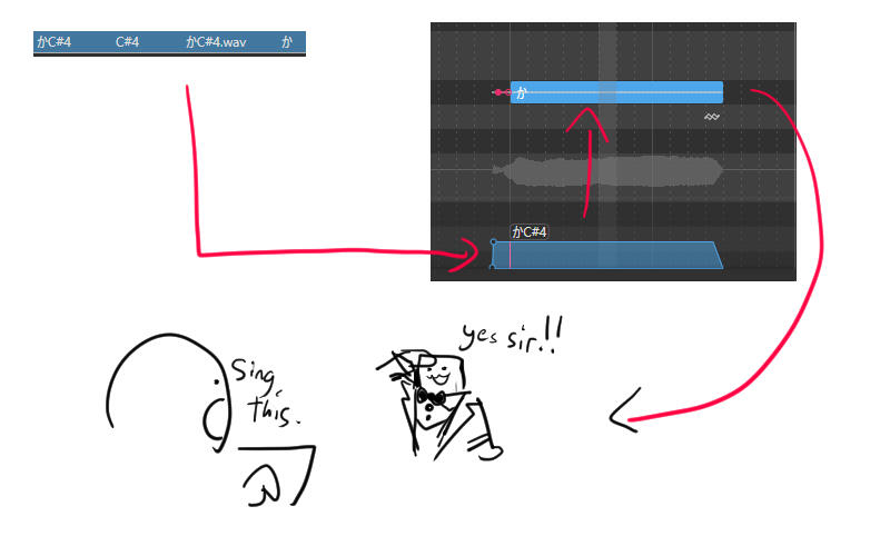 Additionally, there are aliases: names for cut samples that allow a UST to 'command' a singer to summon that sample.